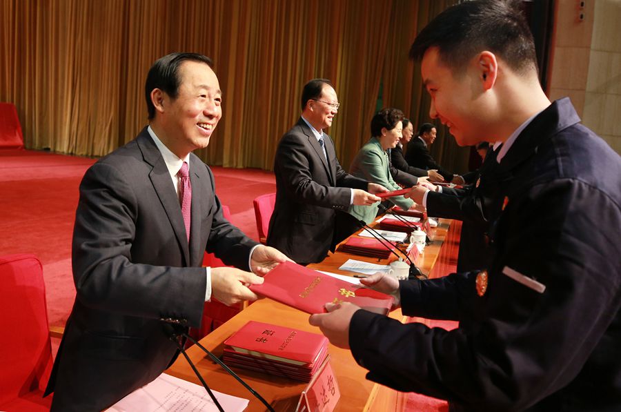 省委書記許達(dá)哲,省委副書記、省政府黨組書記毛偉明等為省勞動(dòng)模范和先進(jìn)工作者頒獎(jiǎng)。
