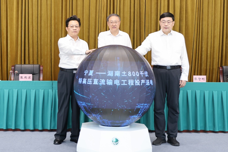 8月20日,寧夏至湖南±800千伏特高壓直流輸電工程投產(chǎn)送電儀式在湖南、寧夏同步舉行。寧夏回族自治區(qū)黨委書記李邑飛、湖南省委書記沈曉明出席,寧夏回族自治區(qū)黨委副書記、自治區(qū)主席張雨浦,湖南省委副書記、省長毛偉明,國家電網(wǎng)有限公司董事長、黨組書記張智剛致辭,國家電網(wǎng)有限公司總經(jīng)理、黨組副書記龐驍剛出席。