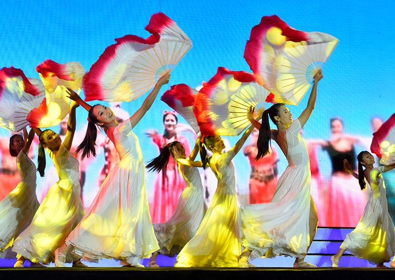 北京市八一學(xué)校舞蹈團(tuán)演員在“詩意中國——第十屆中華世紀(jì)壇中秋詩會”上表演舞蹈《千年之約》(2018年9月17日攝)。新華社記者 羅曉光 攝