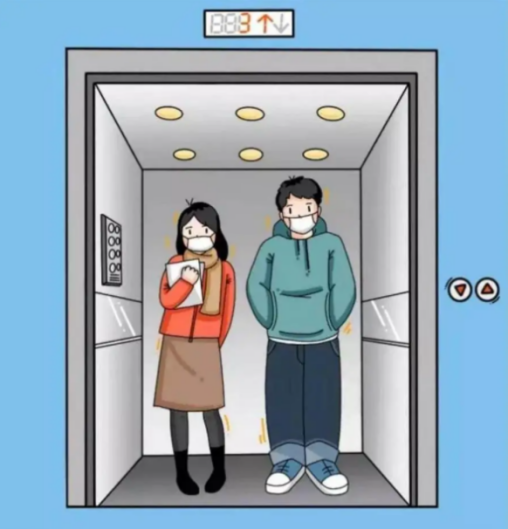 正確做法:在電梯(密閉、空氣流通較差的公共場所)、家門口的小賣部(容易產(chǎn)生人員聚集)、公共廁所(人流量較大,若消殺不及時,環(huán)境中很容易殘留病毒)、其他室內(nèi)場所(商場、電影院等人員密集場所)內(nèi),都應(yīng)佩戴好口罩。